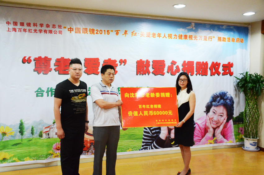 2015年7月,沈阳何氏眼科-百年红“敬老、爱老”献爱心老花镜捐赠仪式